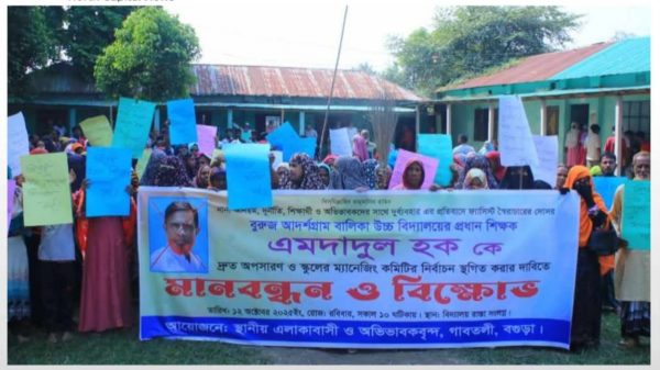 প্রধান শিক্ষকের অপসারণের দাবিতে গাবতলীতে বিক্ষোভ ও ঝাড়ু মিছিল